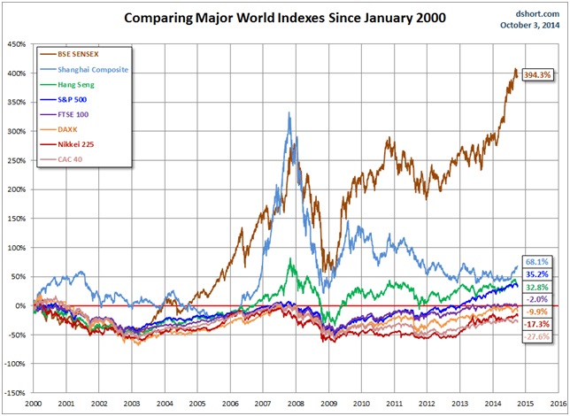 Major world indices performance from 2000 and 2009